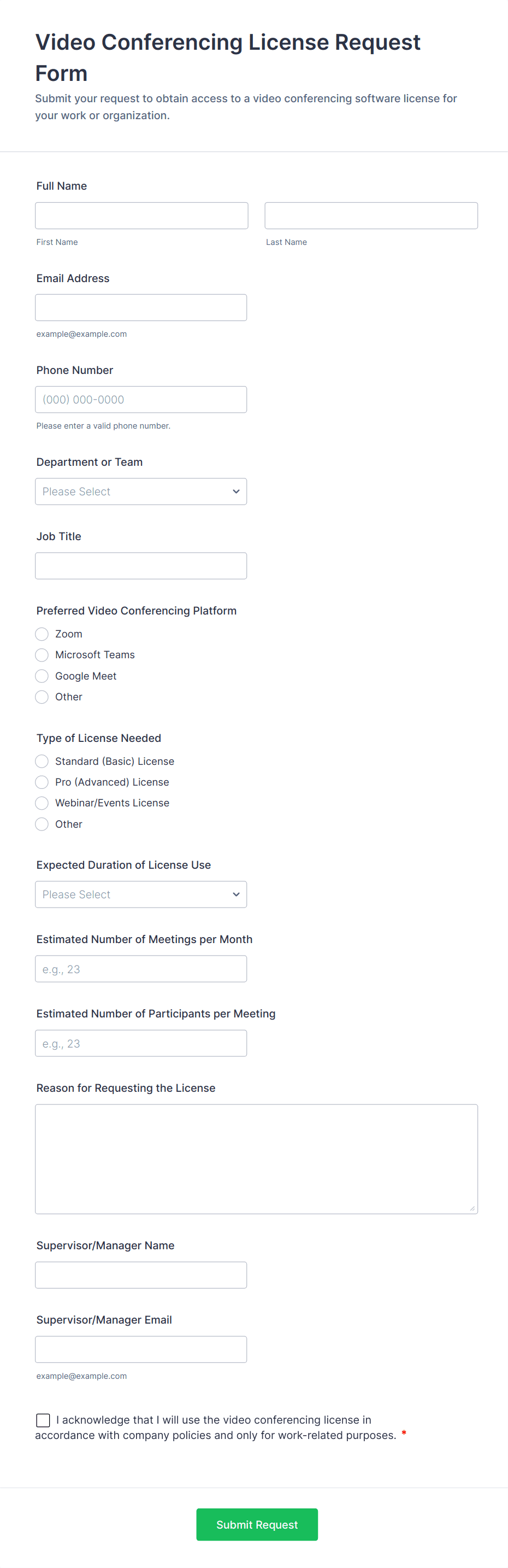 • Software Requests: Require details about the software, version, intended use, and license requirements.