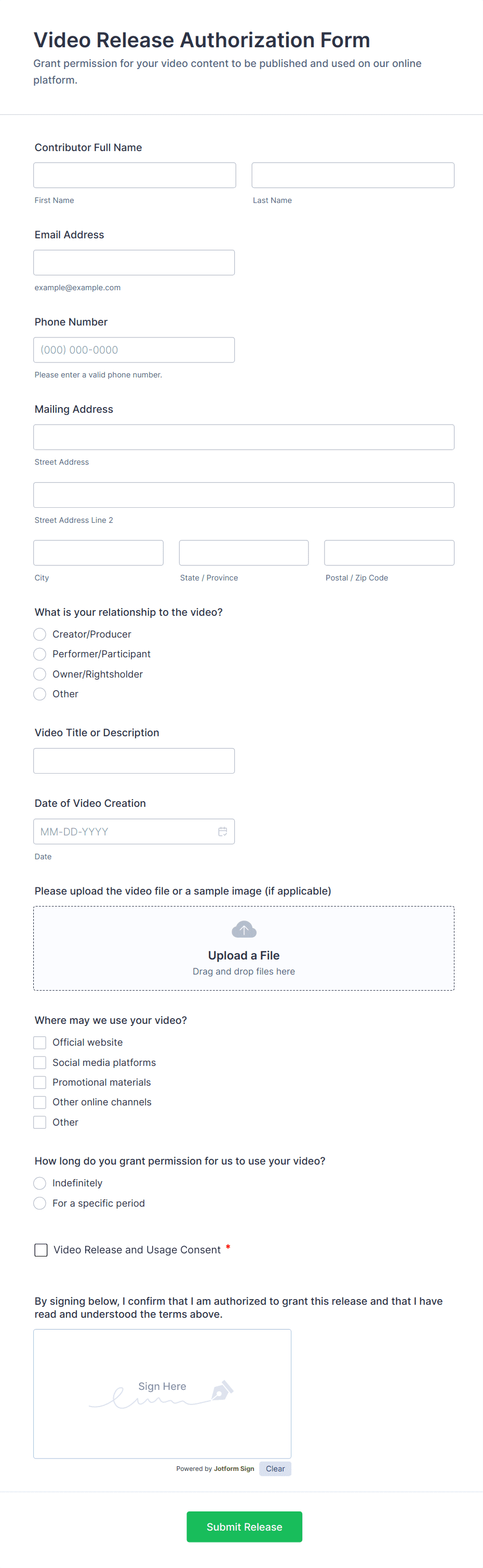 Creating a release form template with Jotform is a straightforward process that can be tailored to fit any use case, whether you need a photo release, liability waiver, or medical information release. Here’s a step-by-step guide to help you design, customize, and manage your release forms efficiently: