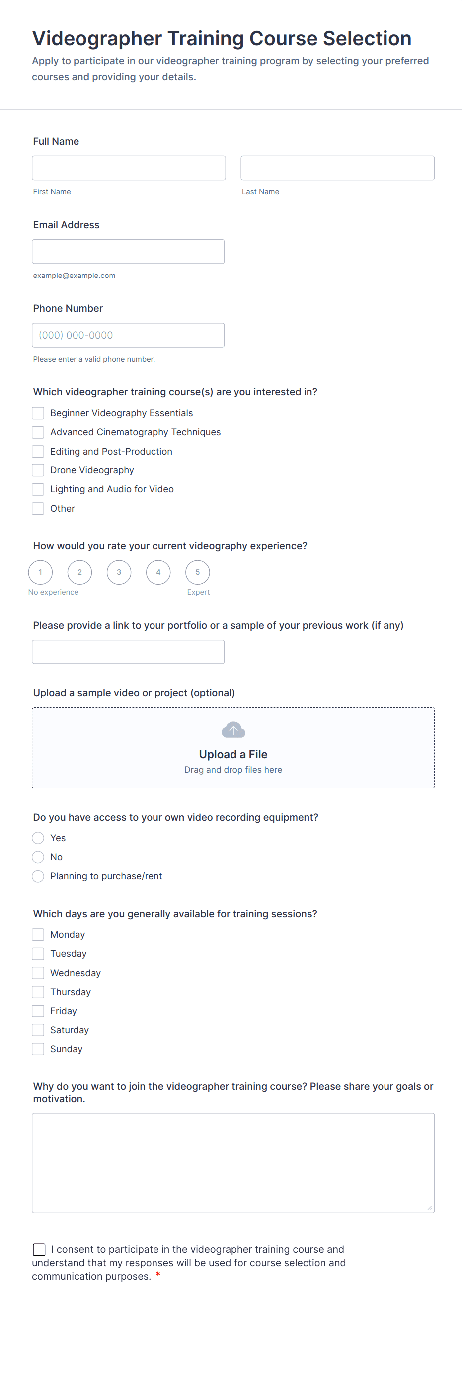 The Cultural Documentary Footage Consent Form is a Jotform Form Template that helps filmmakers collect clear participant permissions online using a no-code form builder, drag-and-drop interface, and organized form submission data collection.