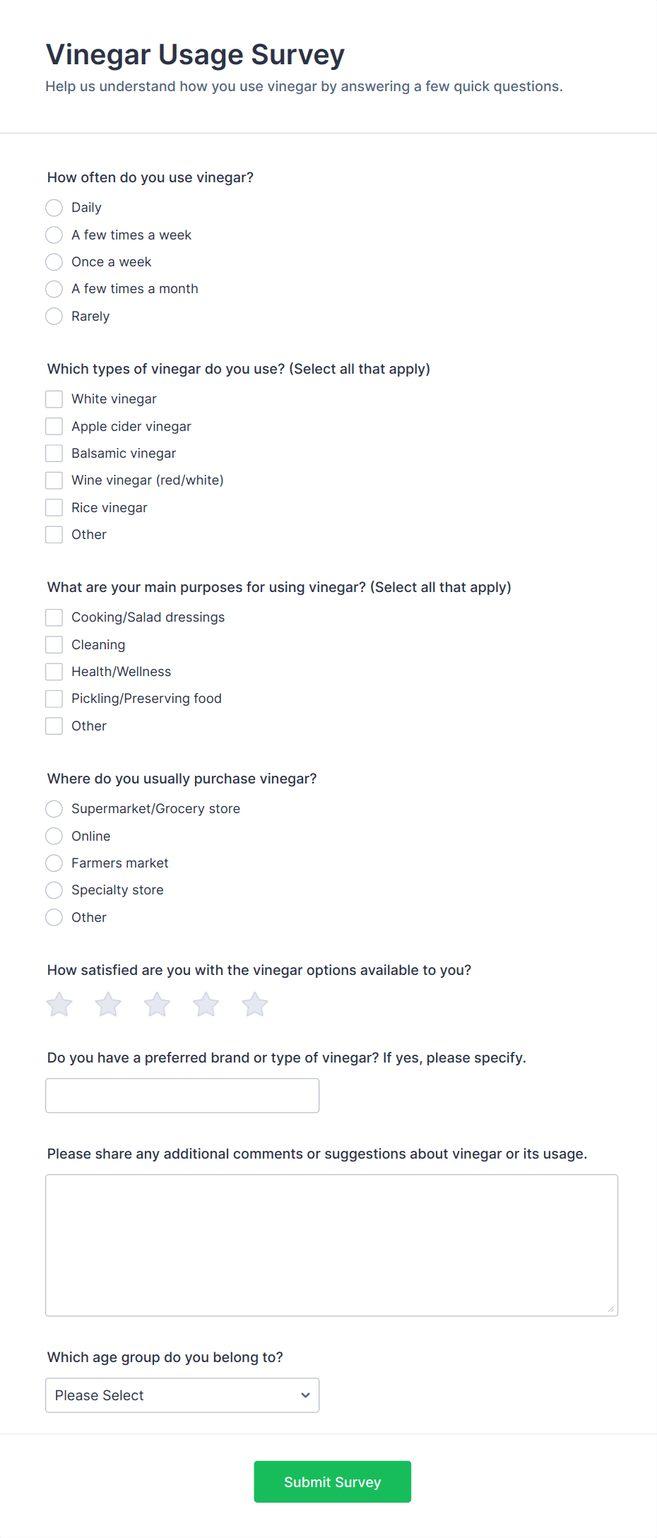 A product usage survey template is a survey form used to collect information and feedback from customers about their experience with a particular product or service.