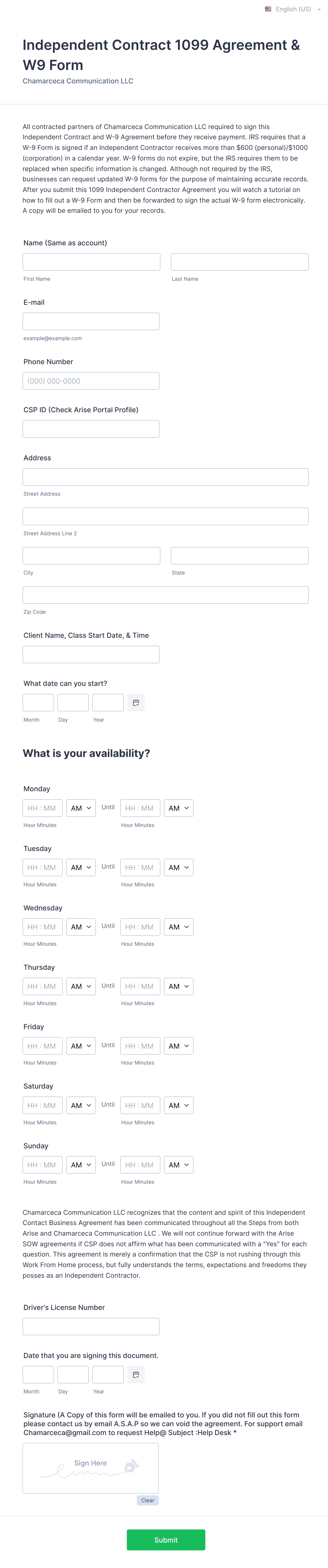 A business form template is a pre-designed digital form used to collect, process, and manage information for various business operations, such as client intake, employee onboarding, or order processing.