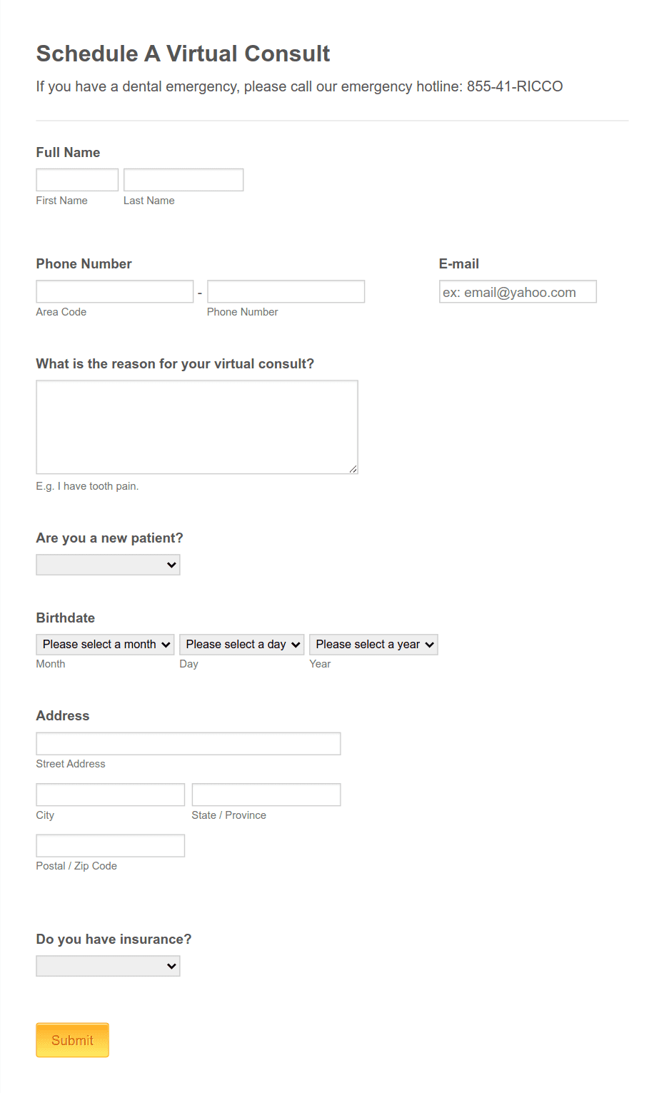 New Patient Enrollment Form which personal information, contact information, emergency contact people area and medical history information are provided; allowing you to have an easier and faster registration process.
