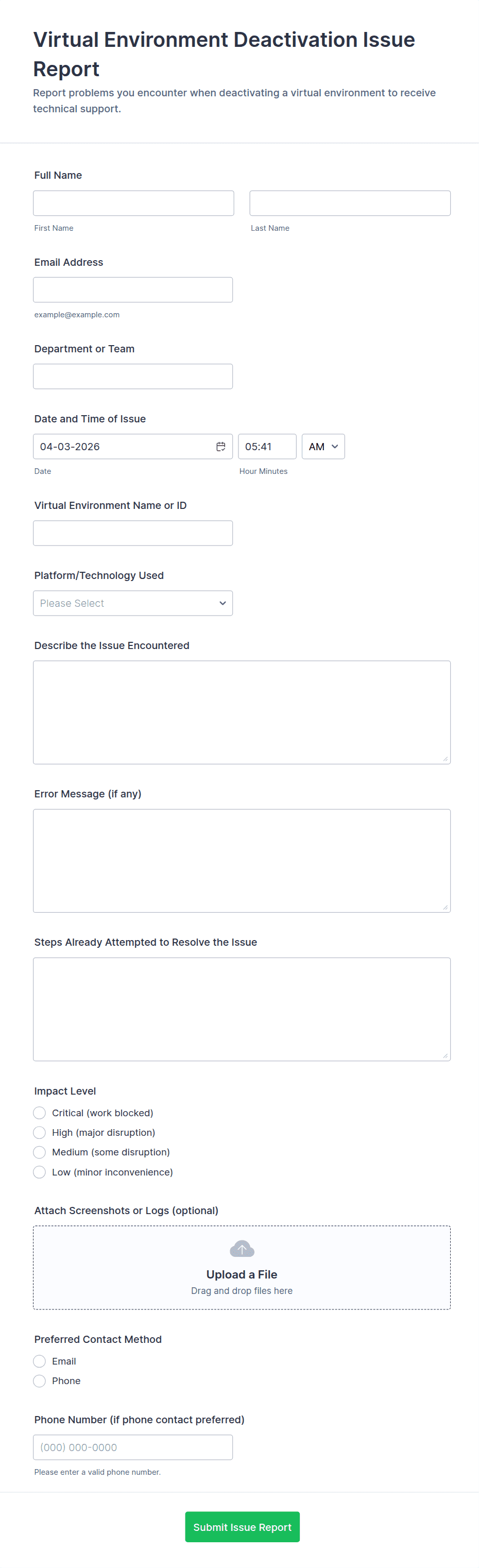 An IT Service Ticket Form is a form template designed to streamline IT service management within organizations.