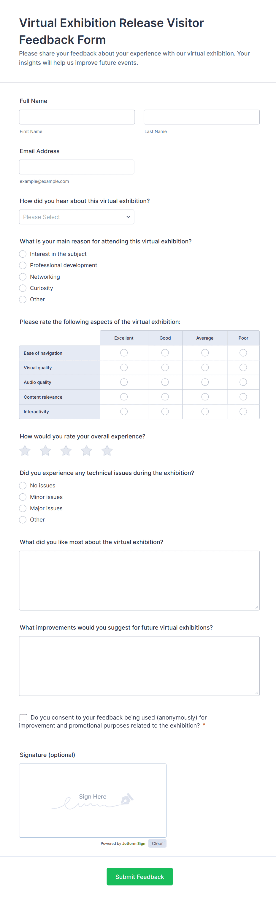 Event Feedback Forms are versatile and can be adapted to suit a variety of event types and organizational needs. Their primary function is to help event organizers gather honest, actionable feedback to improve future events and measure attendee satisfaction. Here’s how they can be used in different scenarios: