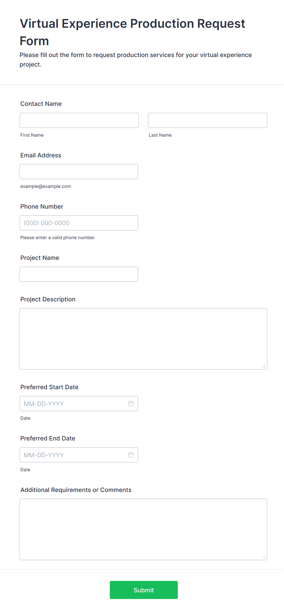 3. What information is typically collected in a Virtual Event Form?
