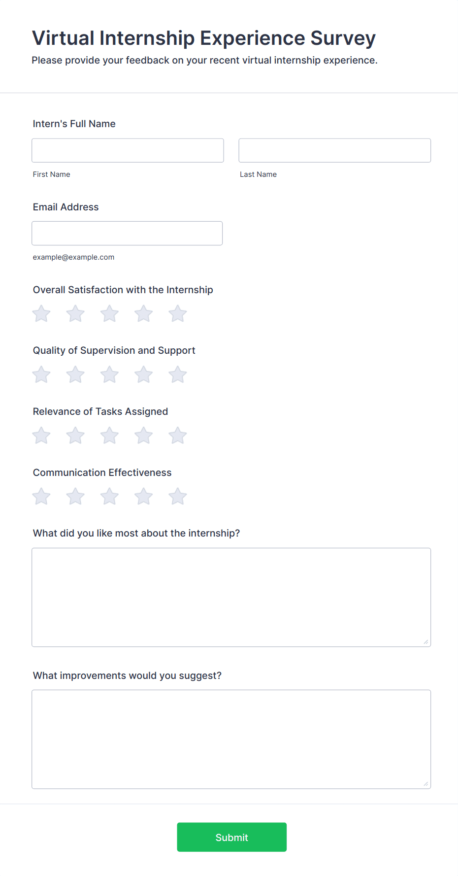 • For customer satisfaction surveys, include Net Promoter Score (NPS) fields or star ratings.