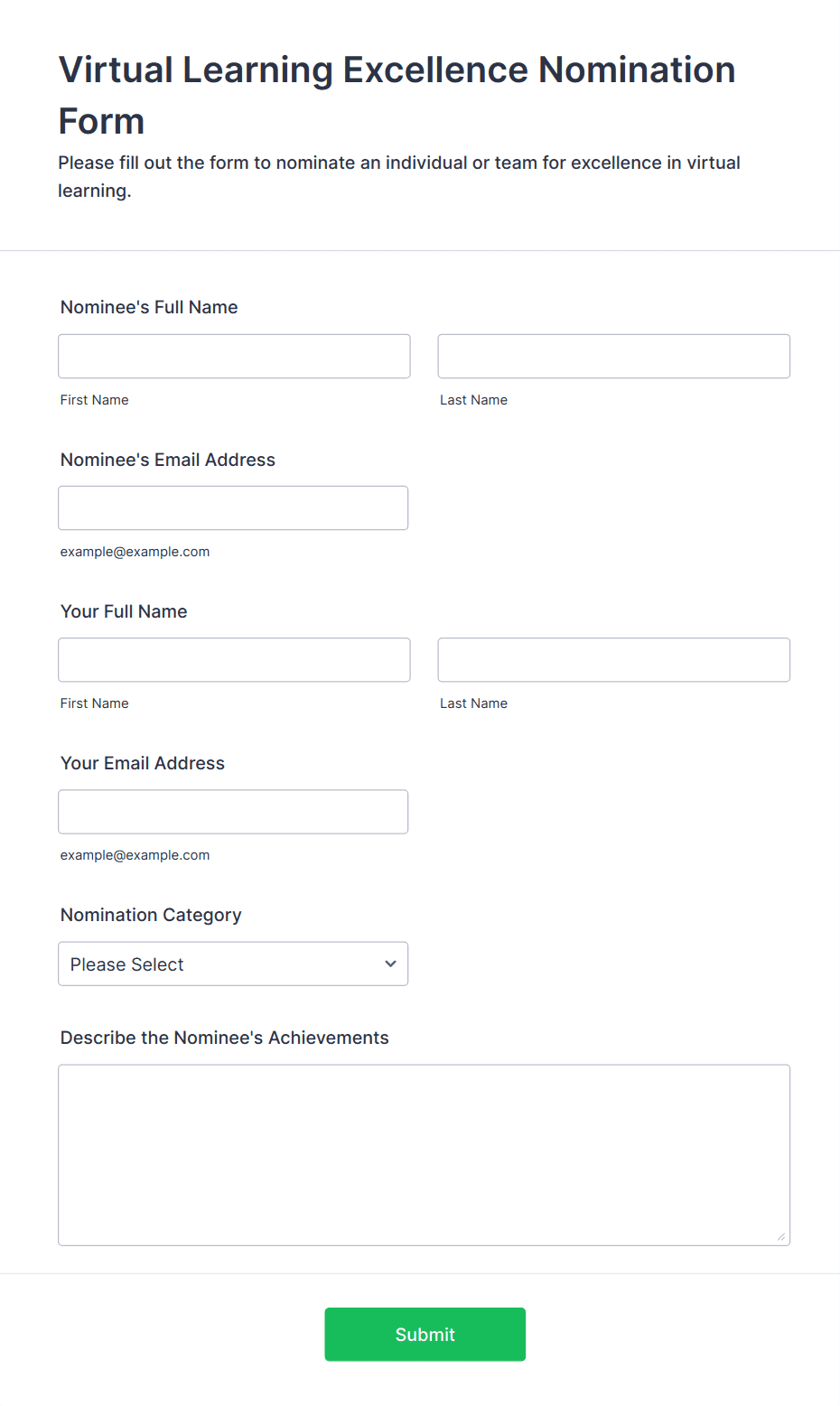 • For job applications, include fields for personal information, education, work experience, references, and file uploads for resumes or cover letters.