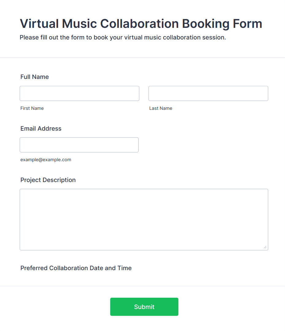 The Music Artist Booking Form allows you to collect artist booking information, promotional information, and other details.