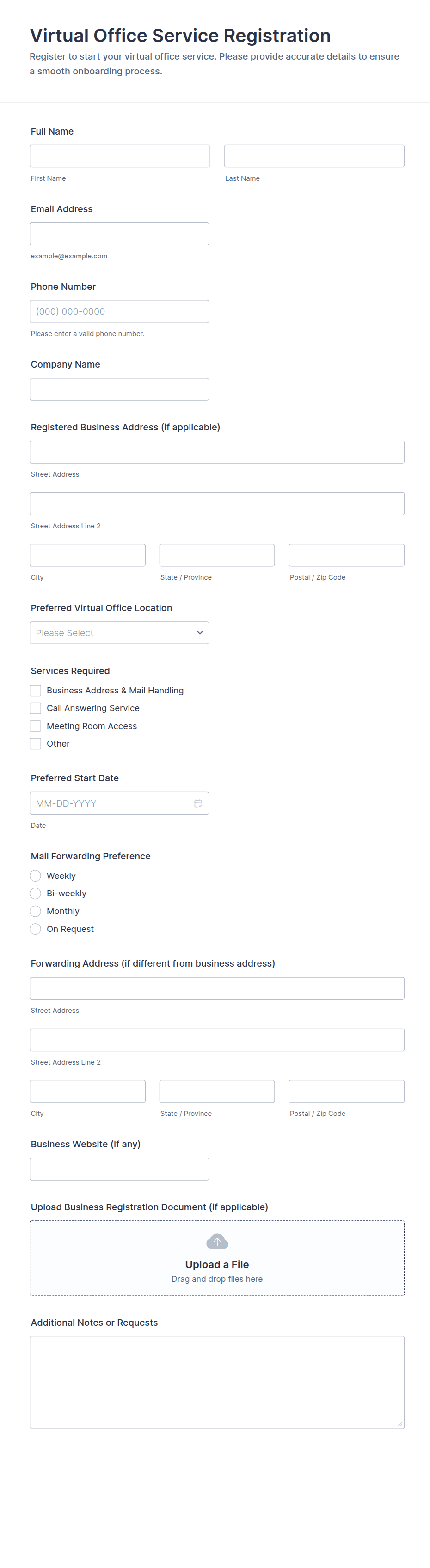 • Government Registration: Forms may require detailed legal documentation uploads, tax ID fields, and compliance checklists.