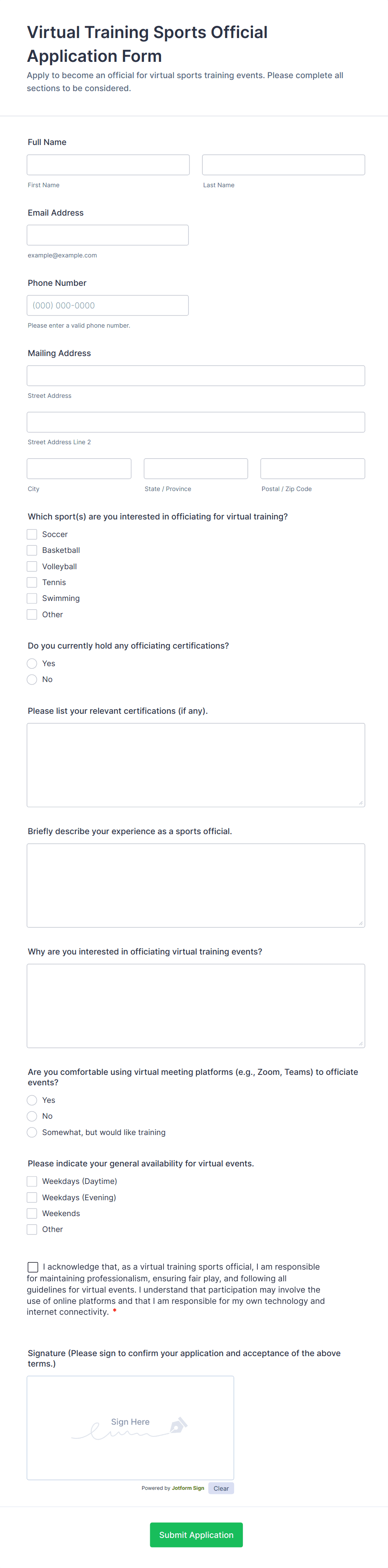 Our forms sports forms are design for mobile, so you can collect signups from users at home or on their mobile devices. Additionally, for users who handle sensitive medical information, Jotform's sports forms are also HIPAA friendly.
