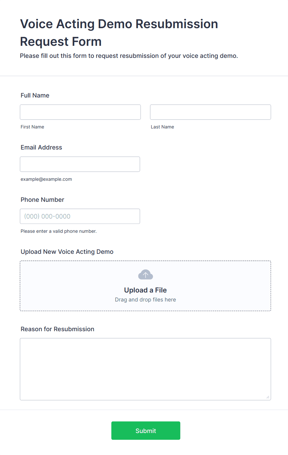 An actor application form is a form that actors fill out to audition for a role in a movie or television series. No coding!