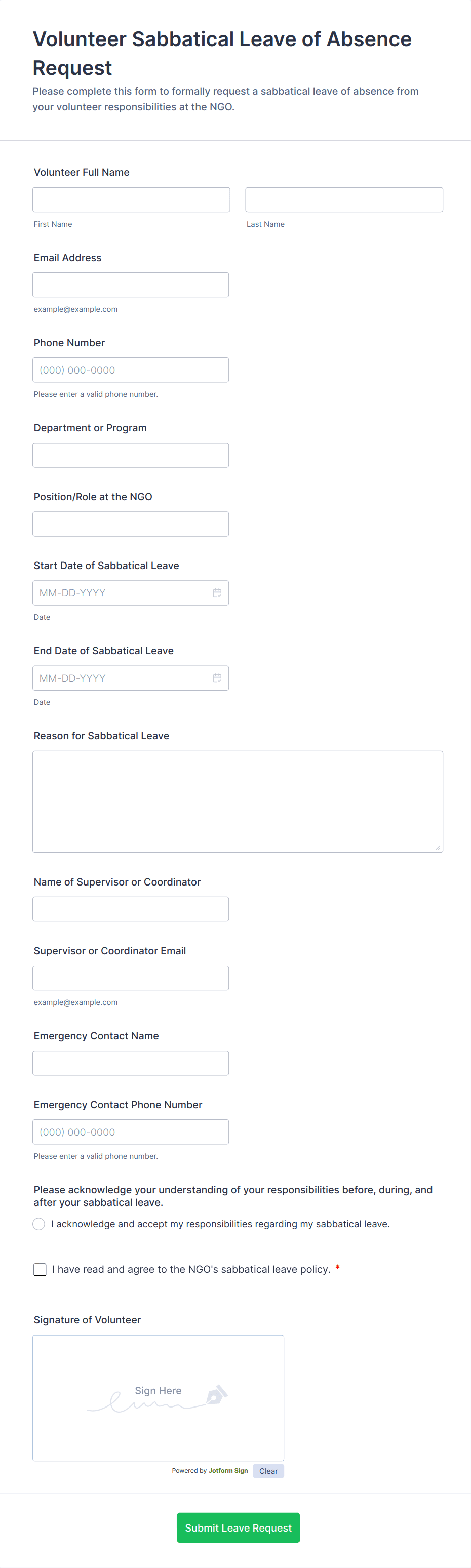 Creating a Leave Request Form with Jotform is a straightforward process that can be tailored to fit any organization’s specific leave policies and approval workflows. Whether you need a simple vacation request form or a comprehensive solution for multiple leave types, Jotform’s intuitive platform makes it easy to design, customize, and manage your forms.