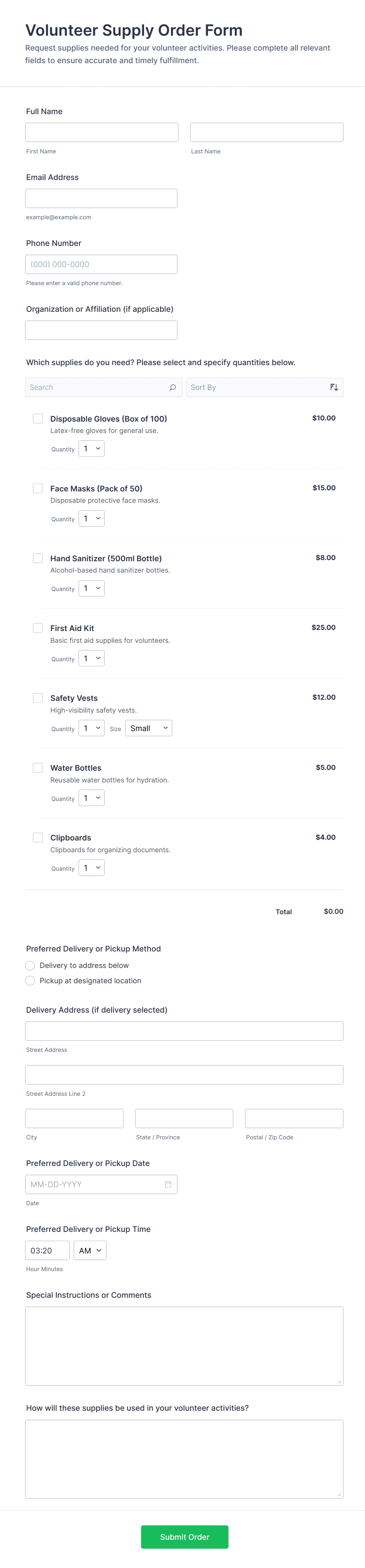Simple Supply Order Form