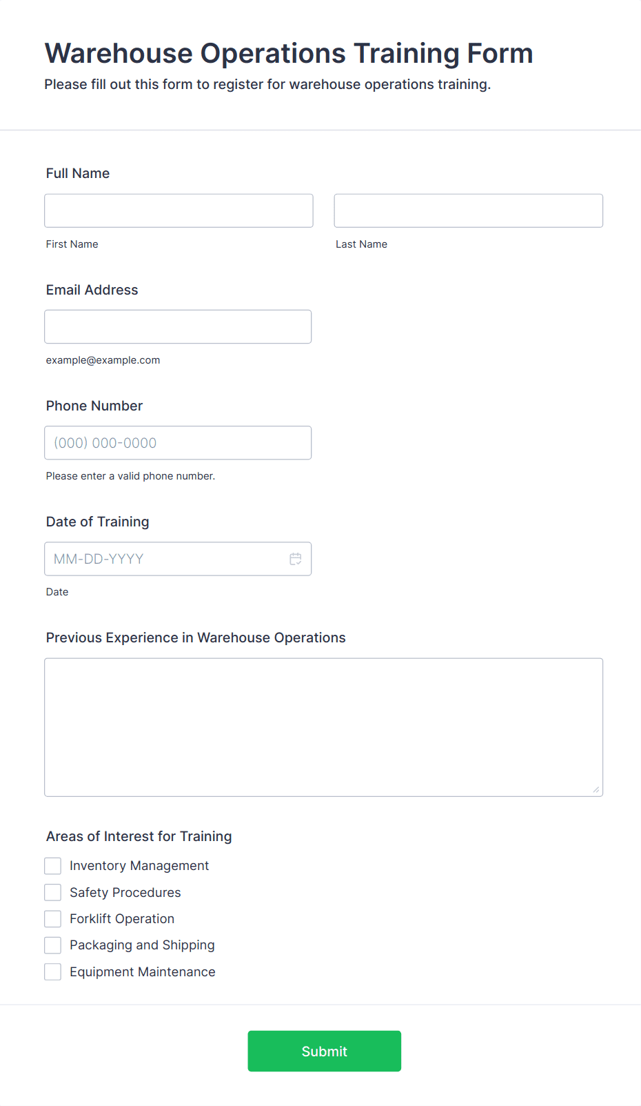 Training forms are specialized digital documents designed to streamline the process of organizing, managing, and evaluating training programs. These forms can be used for a variety of purposes, such as employee onboarding, skills assessments, training feedback, course registrations, pre-training surveys, and post-training evaluations. Organizations of all sizes — from corporate HR departments to educational institutions and training consultants — rely on training forms to collect essential information, track participant progress, and ensure that learning objectives are met efficiently.