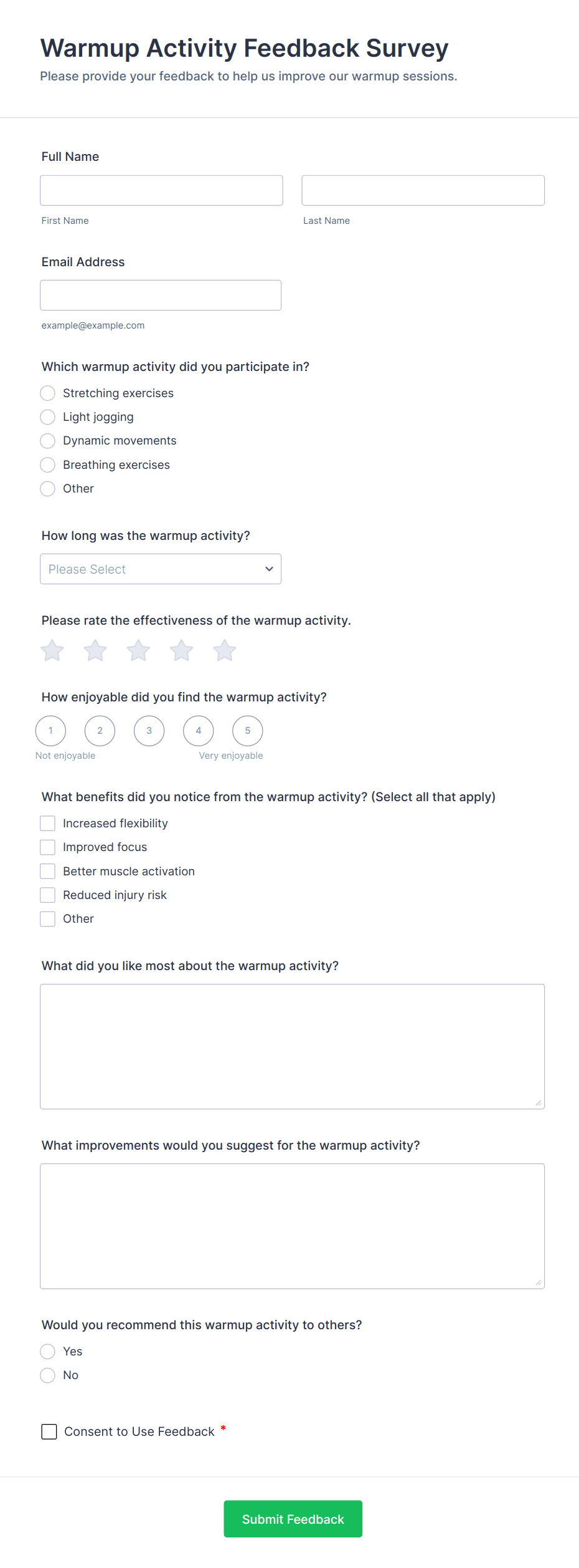 • For customer feedback, include questions about satisfaction, product quality, and likelihood to recommend.