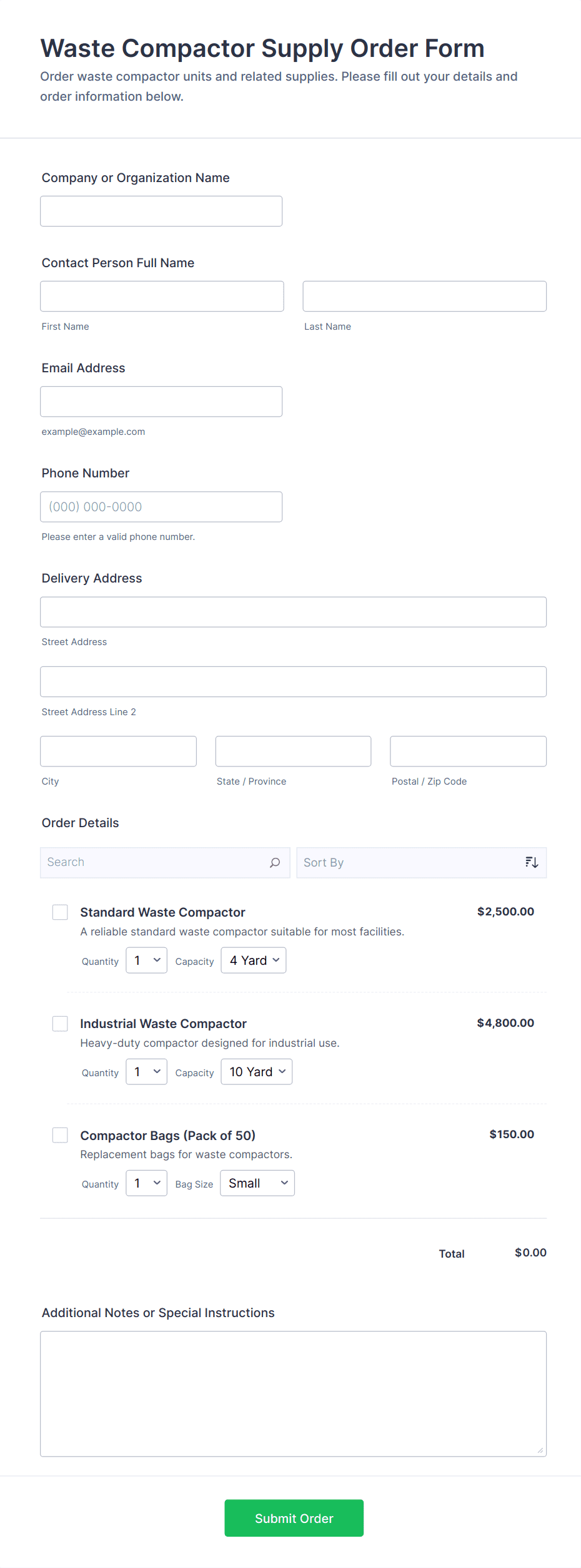 Creating a supply order form with Jotform is a straightforward process that can be tailored to your organization’s specific needs. Whether you’re managing office supplies, medical equipment, or event materials, Jotform’s flexible platform allows you to design forms that streamline procurement and improve record-keeping.