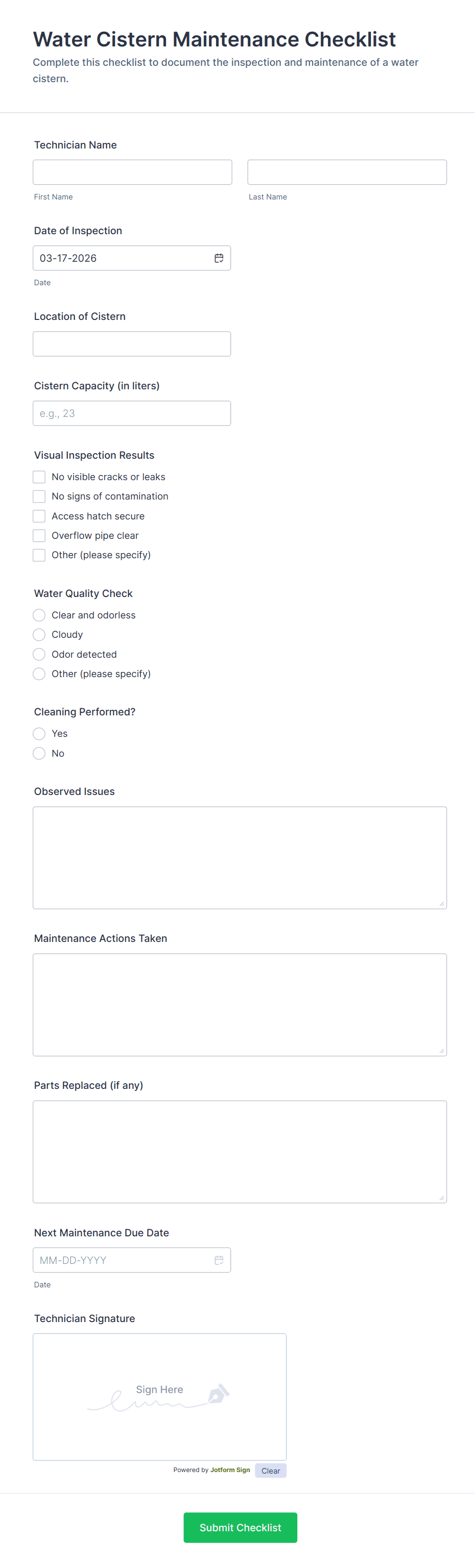 - Preventive maintenance checklist submissions