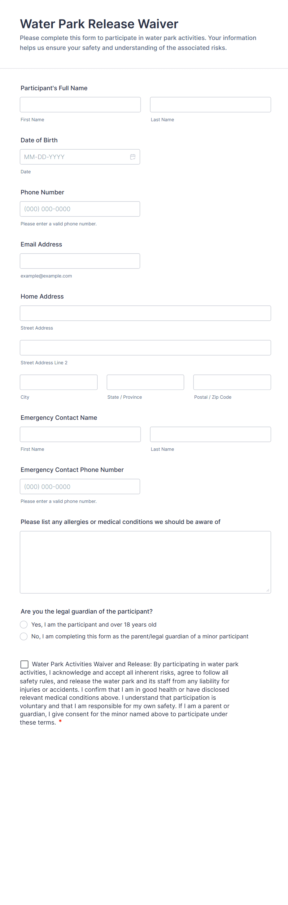 Collect participant name, date of birth, emergency contact, and any medical notes or allergies if needed.