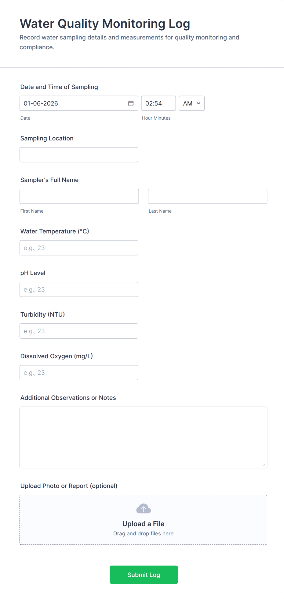 - Environmental Monitoring Forms: Include data entry for measurements, location fields, and observation notes.