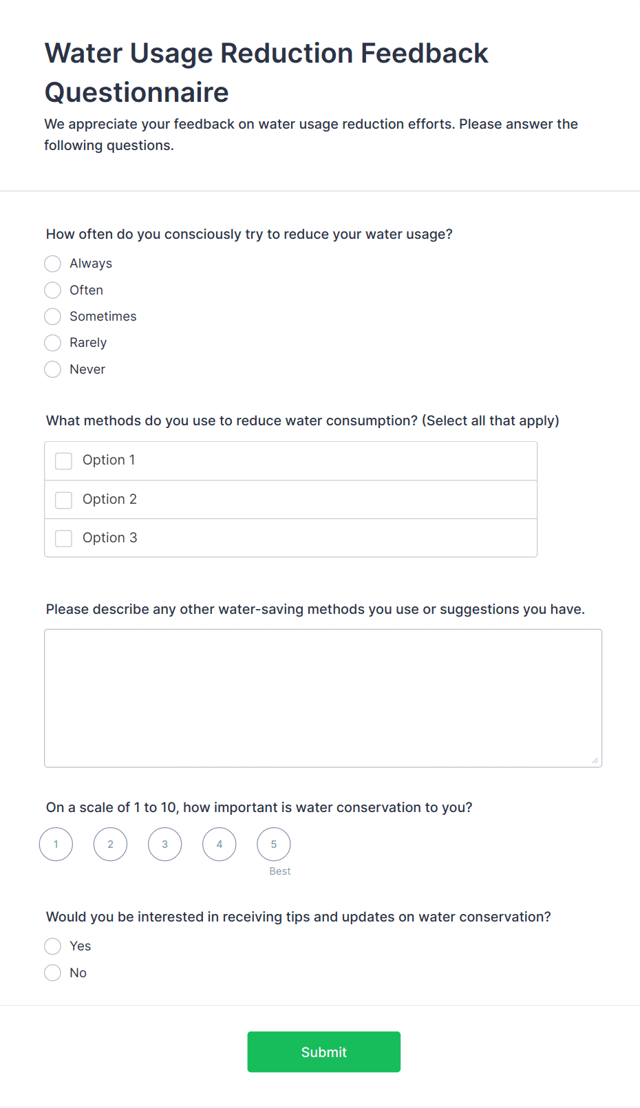 • Product feedback forms may include questions about usability, features, and likelihood to recommend.