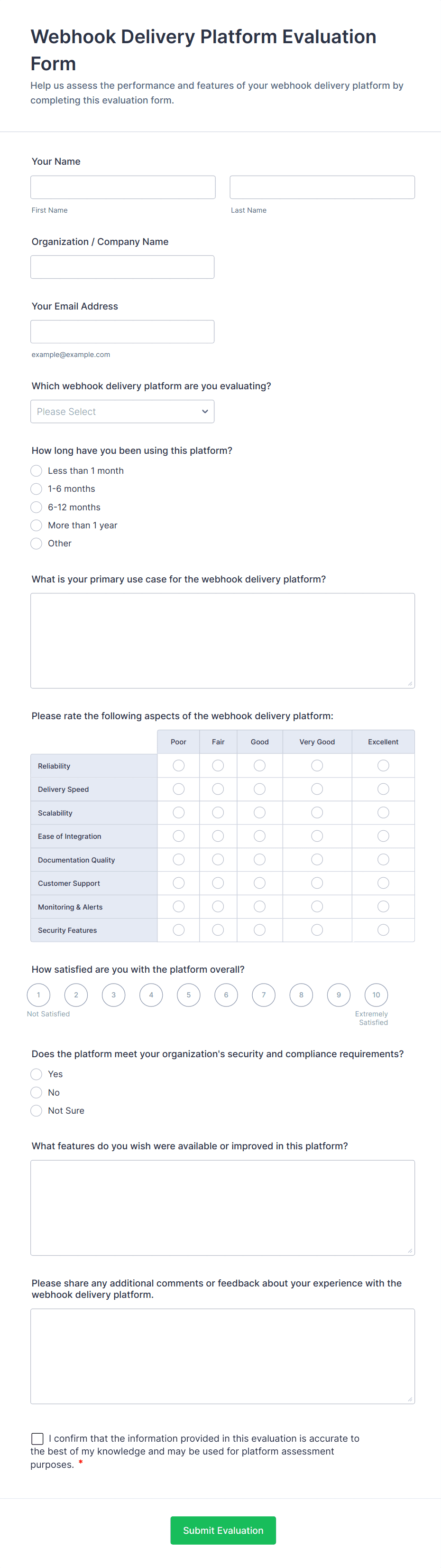 AI Agent Chat Interaction Feedback Form helps product and support teams collect user satisfaction scores and comments about AI chats, turning feedback into insights to improve AI experiences.
