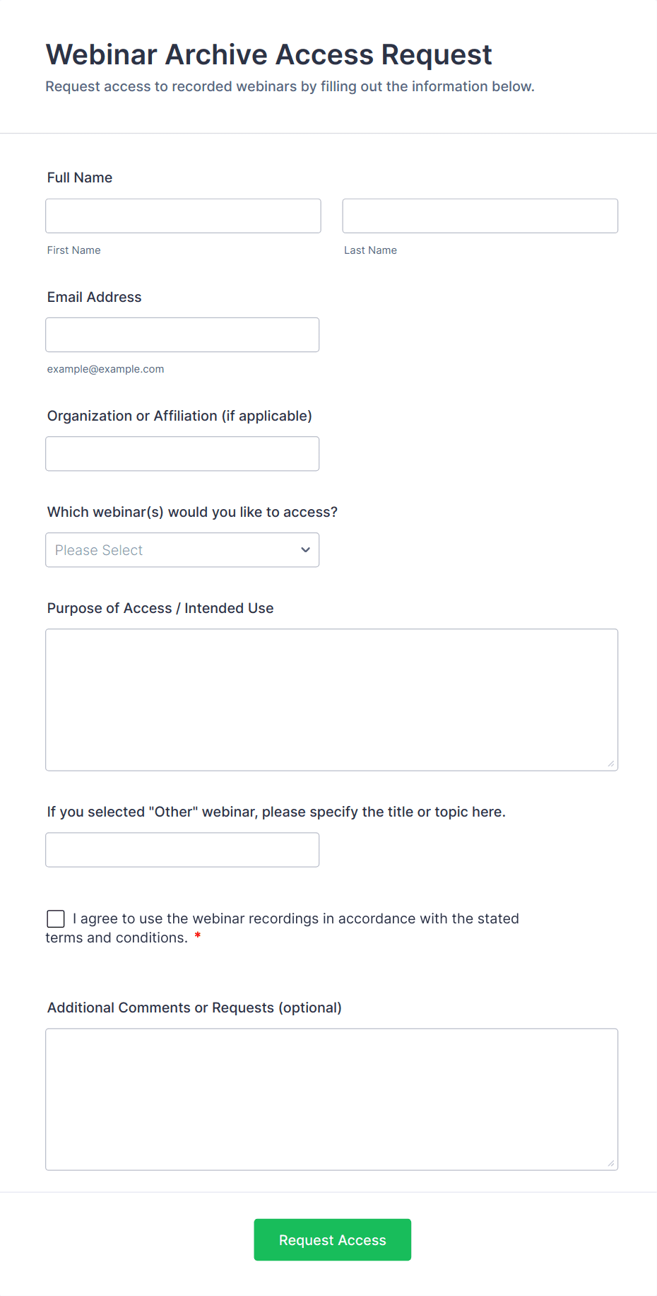 Virtual Event Forms can be tailored to address a wide range of scenarios, each with its own set of requirements and benefits. Here’s how these forms can be adapted for different use cases, who might use them, and how their content may vary: