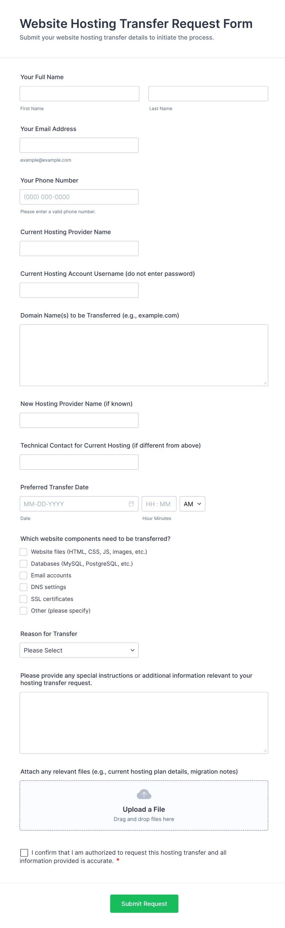 A server request form is a document that describes the server requirements and operating environment to be used for a software or hardware product. Easily embed this form either on your website or share it via URL. No coding.