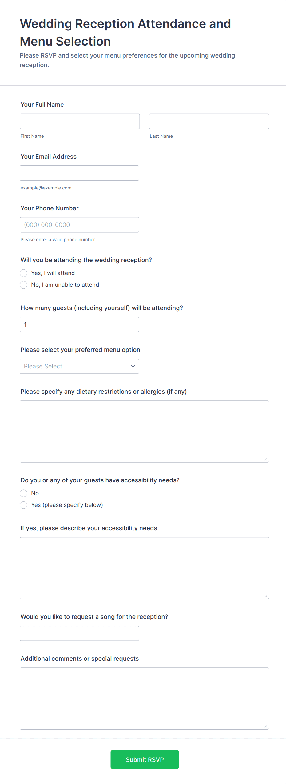 - For formal events (e.g., weddings), forms may include fields for meal choices, plus-ones, and personalized messages.