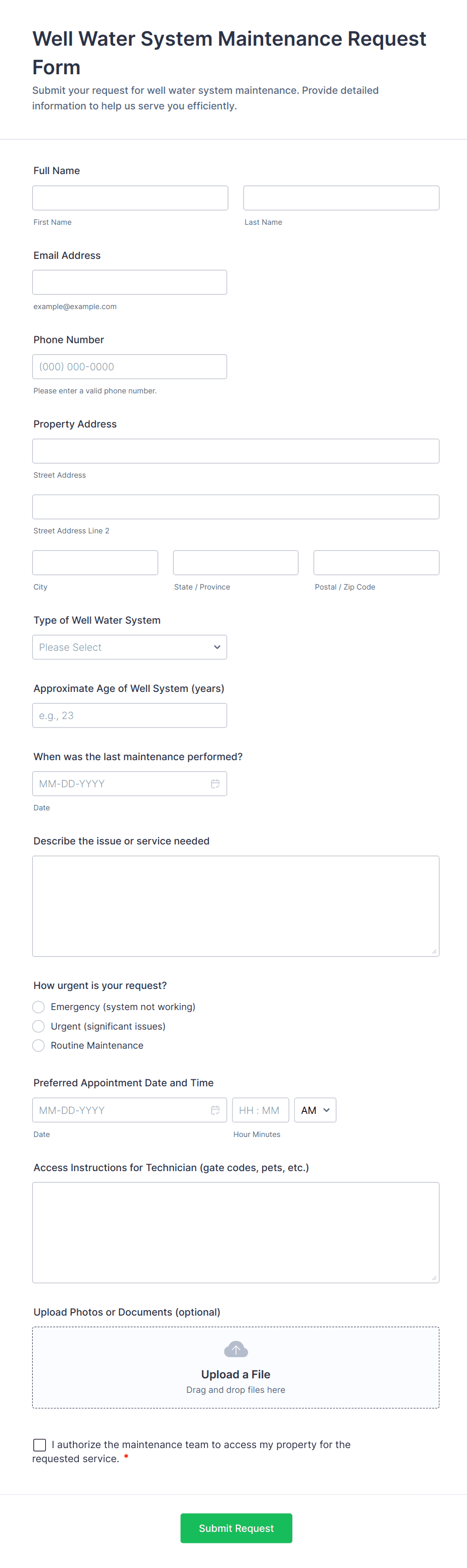 Work request forms are essential tools used by organizations to streamline the process of requesting, tracking, and managing work-related tasks or services. These forms serve as a standardized method for employees, clients, or stakeholders to submit requests for maintenance, IT support, facility repairs, project tasks, equipment needs, or any other service that requires attention from a specific department. By capturing all necessary details upfront, work request forms help ensure that requests are clear, actionable, and prioritized appropriately, reducing miscommunication and delays. Common use cases include internal maintenance requests, IT service tickets, project task assignments, and resource allocation requests.