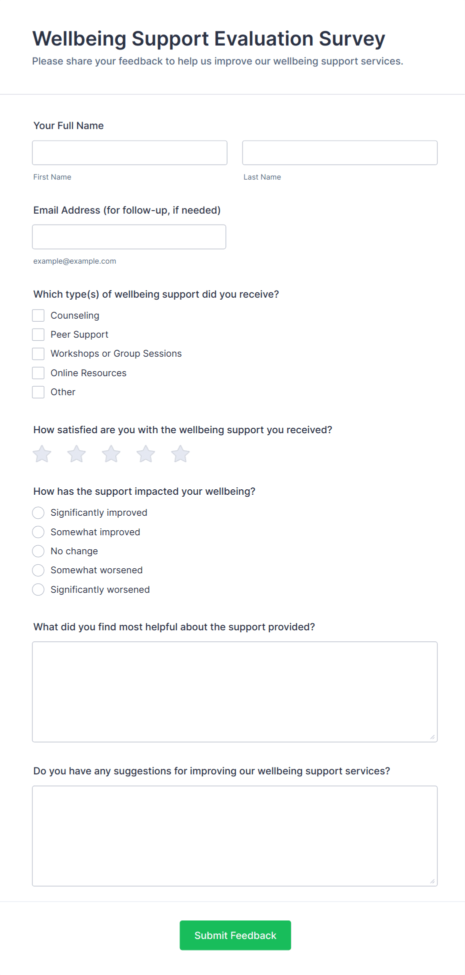 Conduct mental health assessments with this free survey template for businesses, schools, and more. Easy to customize and fill from any device. No coding.