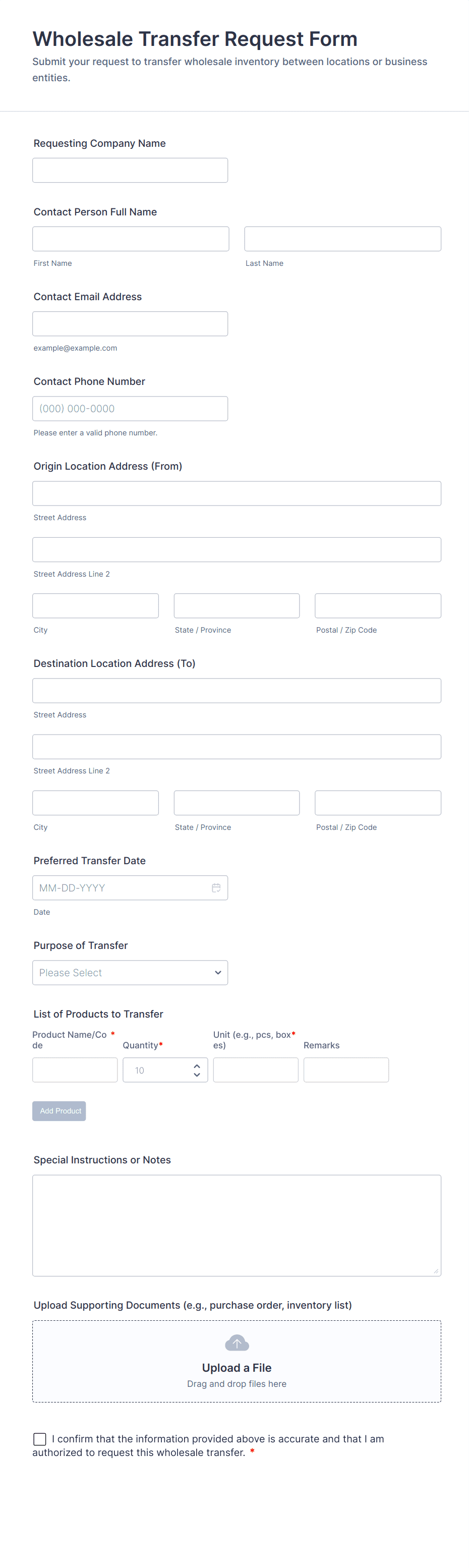 Request forms are essential tools for gathering and organizing information when someone needs to ask for something — whether it’s a service, resource, approval, or support. These forms streamline the process of submitting and managing requests in a wide range of scenarios, such as equipment requests, maintenance requests, time-off requests, IT support, purchase orders, facility bookings, and more. By providing a standardized way to collect all necessary details, request forms help organizations ensure that every request is clear, trackable, and actionable, reducing miscommunication and delays.