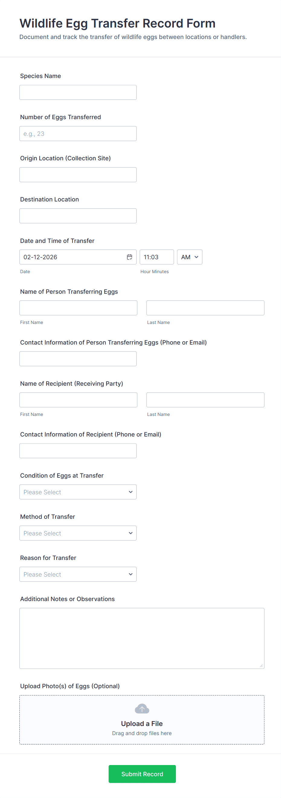 Equipment Inventory Record Form