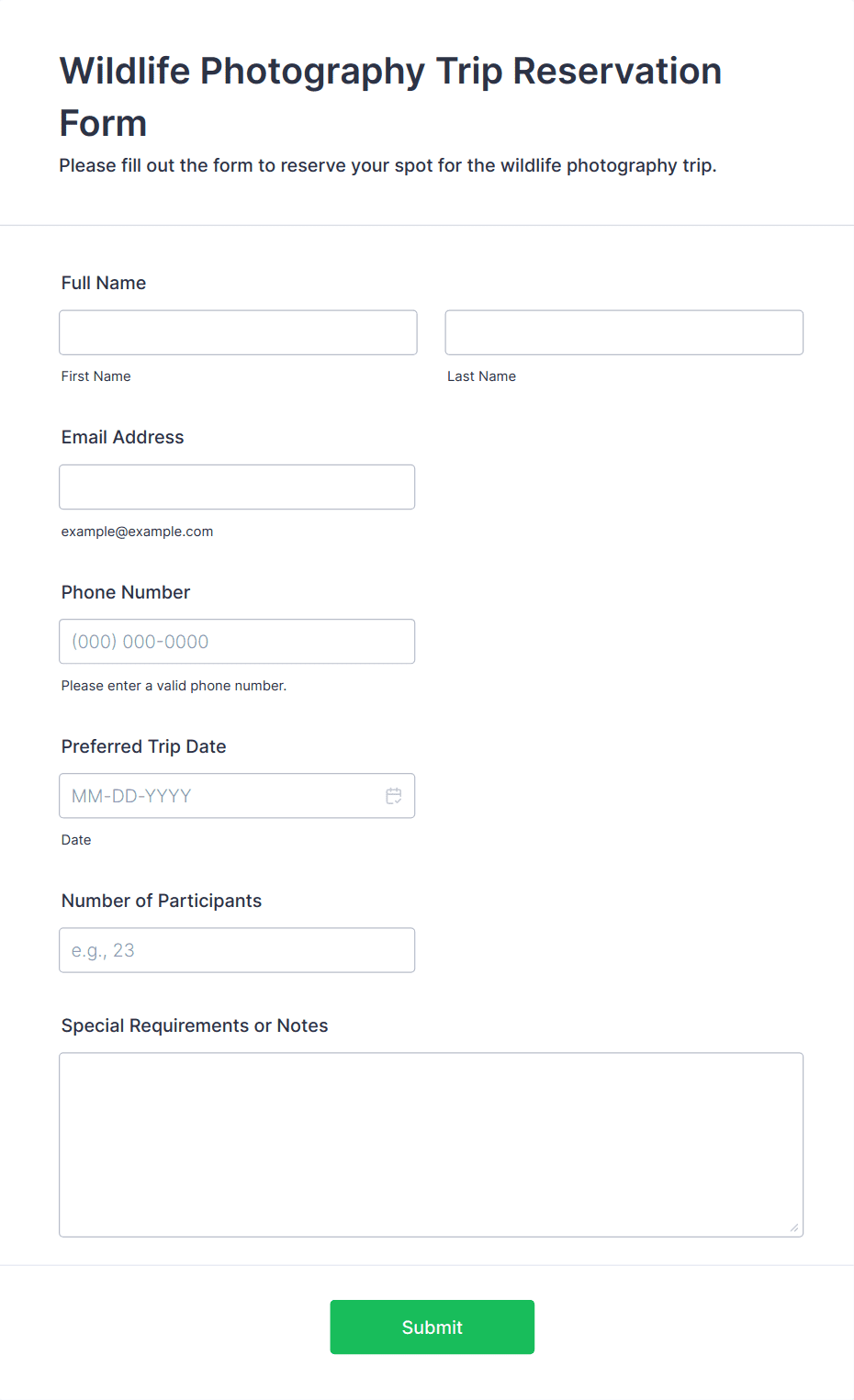 A photography form template is a pre-designed online form that helps photographers collect information for bookings, model releases, orders, feedback, and more, streamlining administrative tasks.
