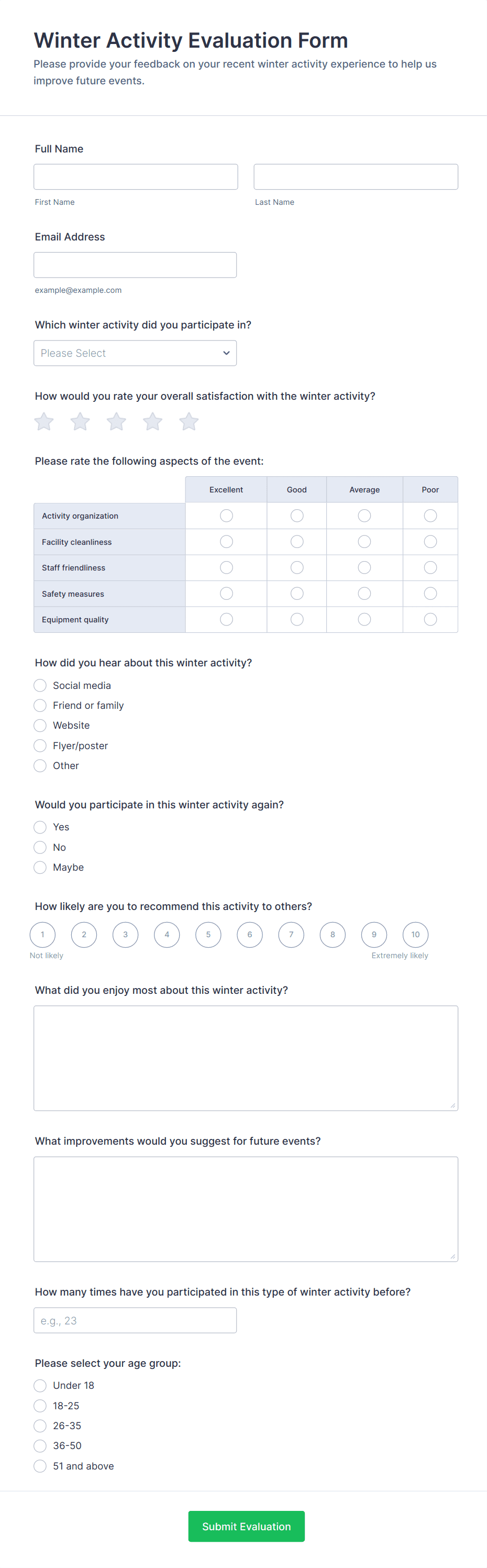 • For virtual events, include questions about technology, accessibility, and online engagement.