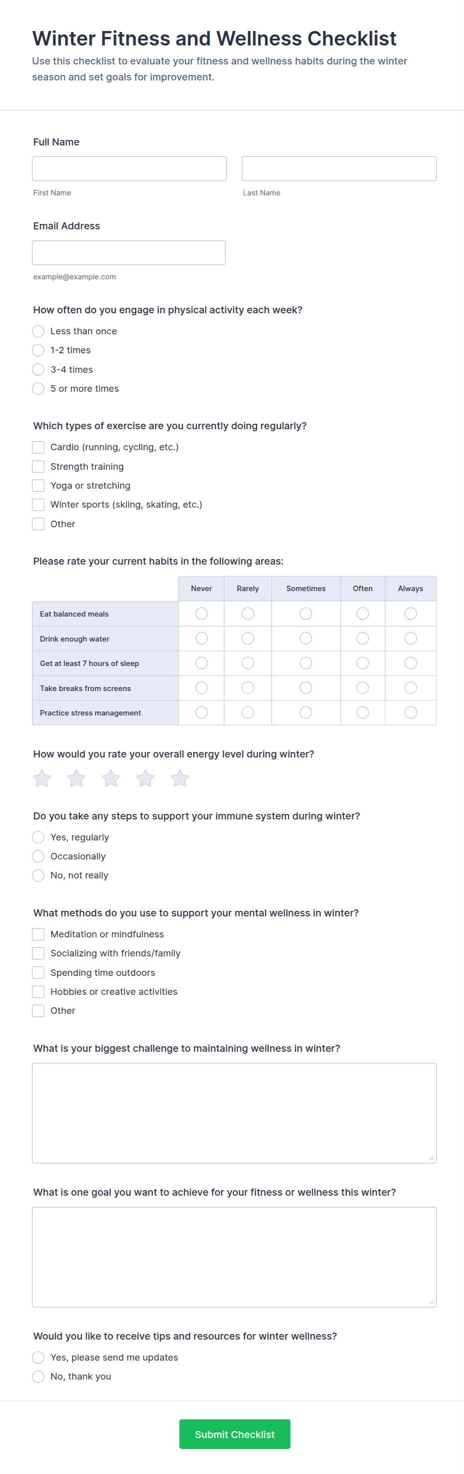 • Enable autoresponder emails to confirm receipt to the person completing the checklist.