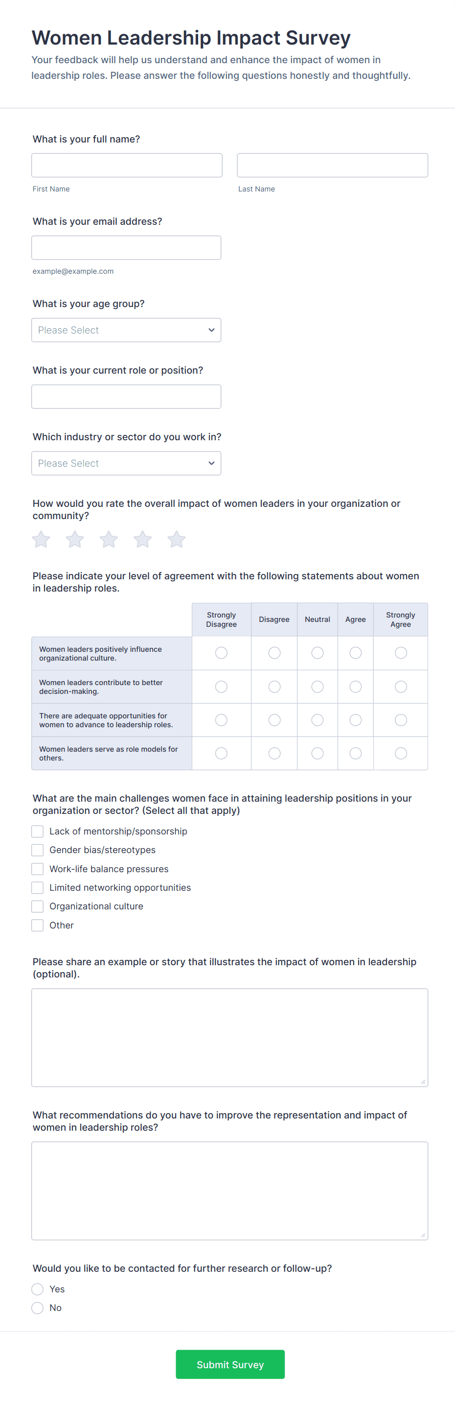 A Human Resources Survey is a structured questionnaire used by HR departments to collect feedback, opinions, and data from employees or job candidates on various workplace topics such as satisfaction, training, onboarding, and company culture.