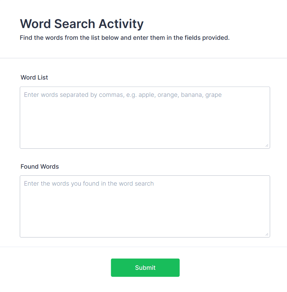No matter what grade level you teach, take your spelling tests online with our free Spelling Quiz Template! Customize the template to include the words on your spelling and vocabulary lists, then embed it in your class website or email a link to your students.