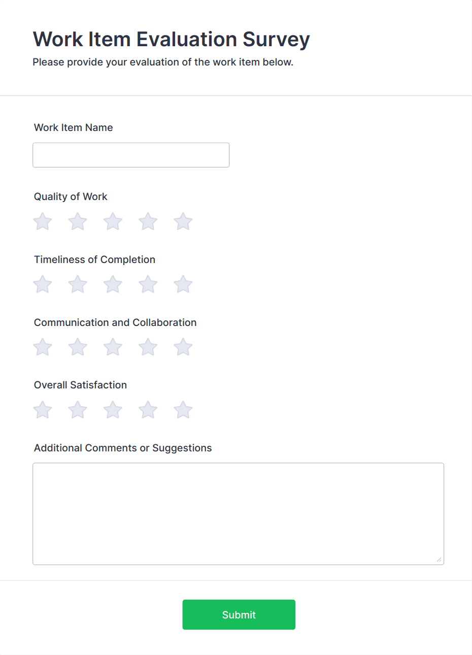 A Peer Evaluation form is a form template designed to streamline the process of collecting feedback and evaluations from peers in the workplace