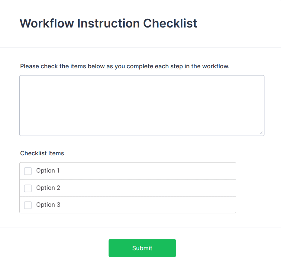 • Decide between a Classic Form (all items on one page) or a Card Form (one item per page). For most checklists, the Classic Form is ideal as it allows users to see all tasks at once.