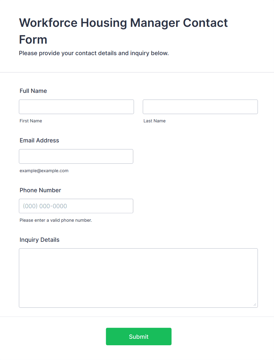 At a minimum, contact forms typically collect the user’s name, email address, and message. Depending on the use case, additional fields like phone number, inquiry type, or file uploads may be included.