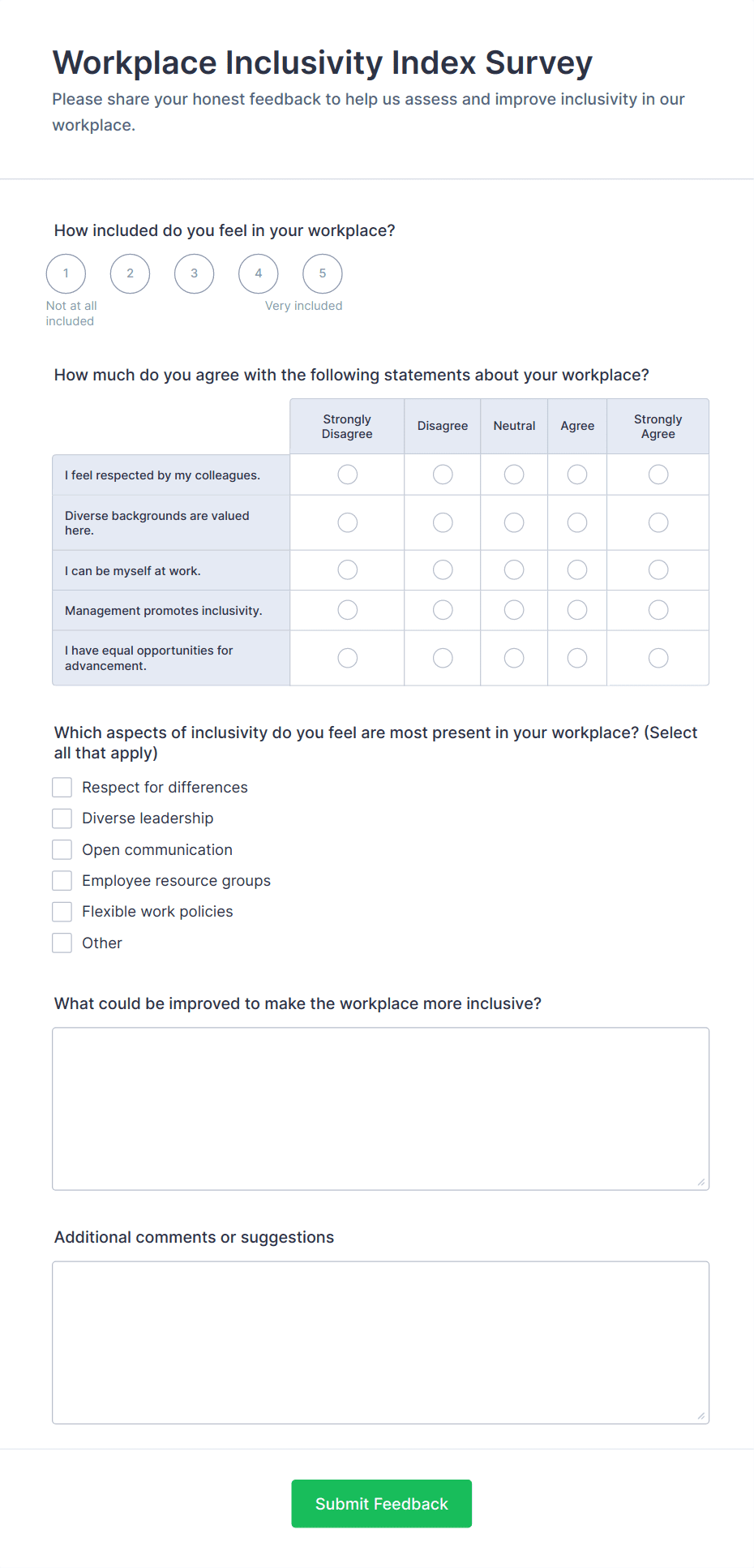 - Employee Surveys: May include questions on leadership, work-life balance, and recognition.