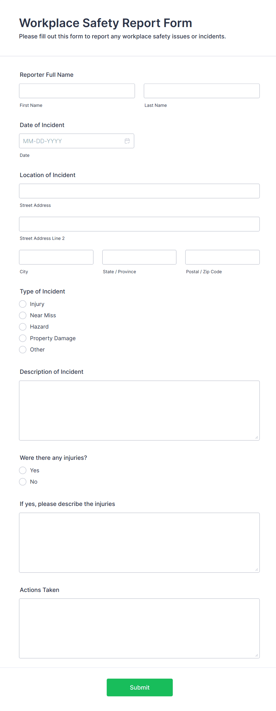 3. What information should be included in an incident report form?