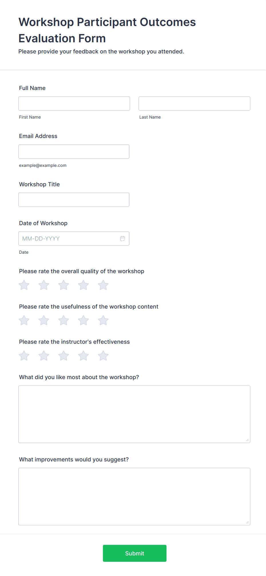 • Workshop or training session assessments to gauge learning outcomes and instructor effectiveness.