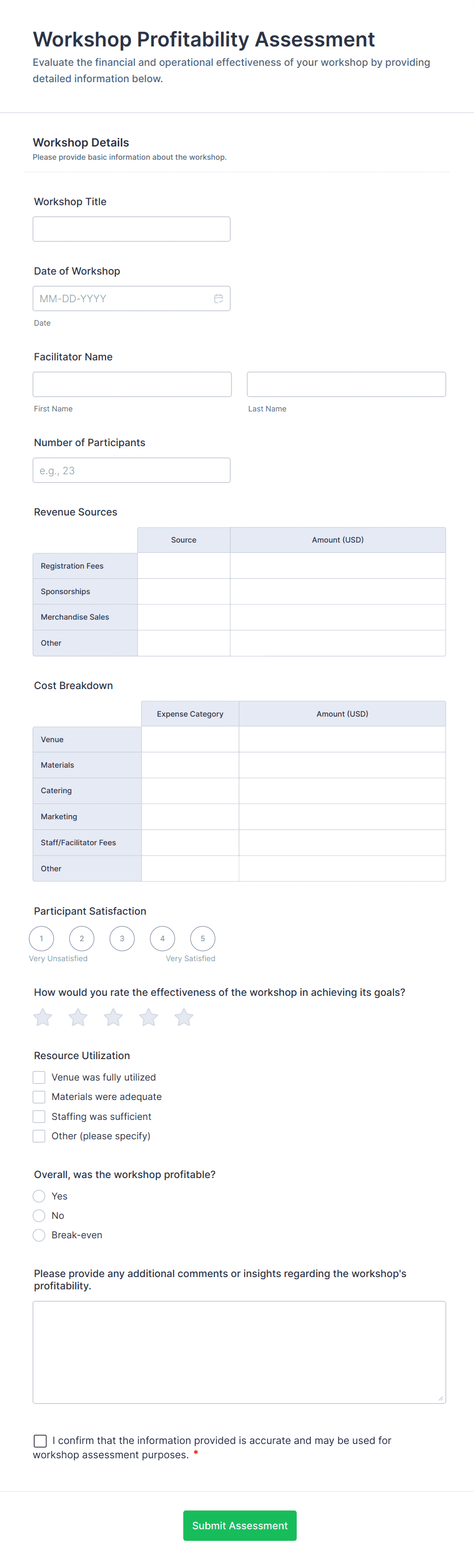 By following these steps, you can create a tailored assessment form that meets your specific needs, streamlines data collection, and provides actionable insights for your organization or project.