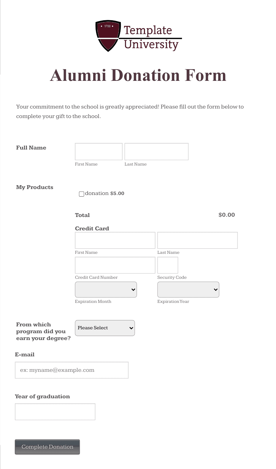 - Memorial or Tribute Donation Forms: Allow donors to dedicate their gift in honor or memory of someone.