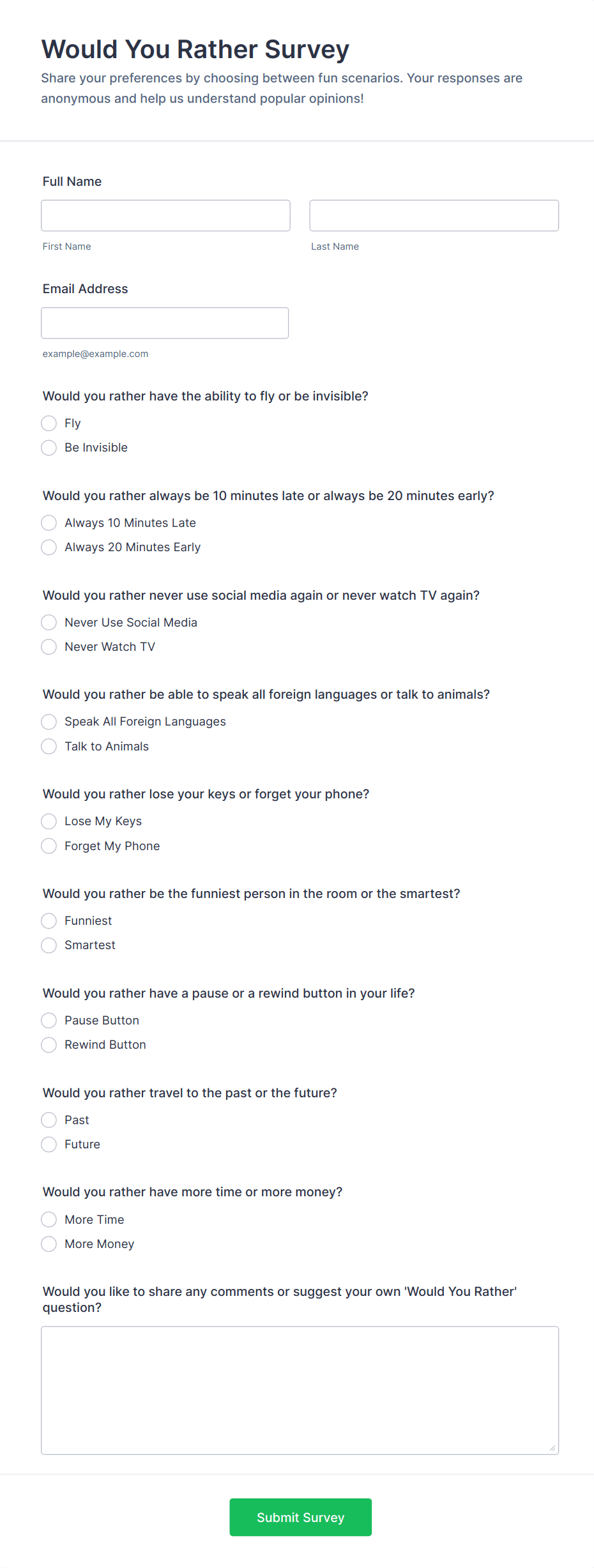 • If anonymity is important (e.g., for employee polls), ensure identifying fields are optional or omitted.