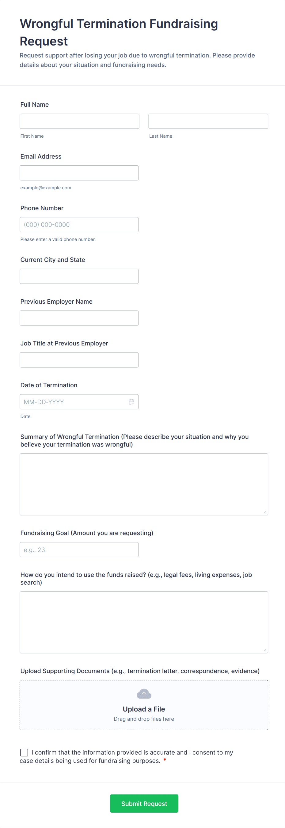 Wrongful Termination Fundraising Request Form FAQs