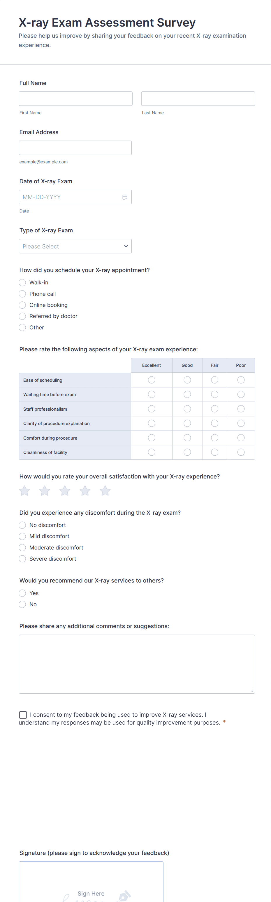 A Patient Satisfaction Questionnaire is a form template designed to gather feedback from patients regarding their experience with healthcare services.