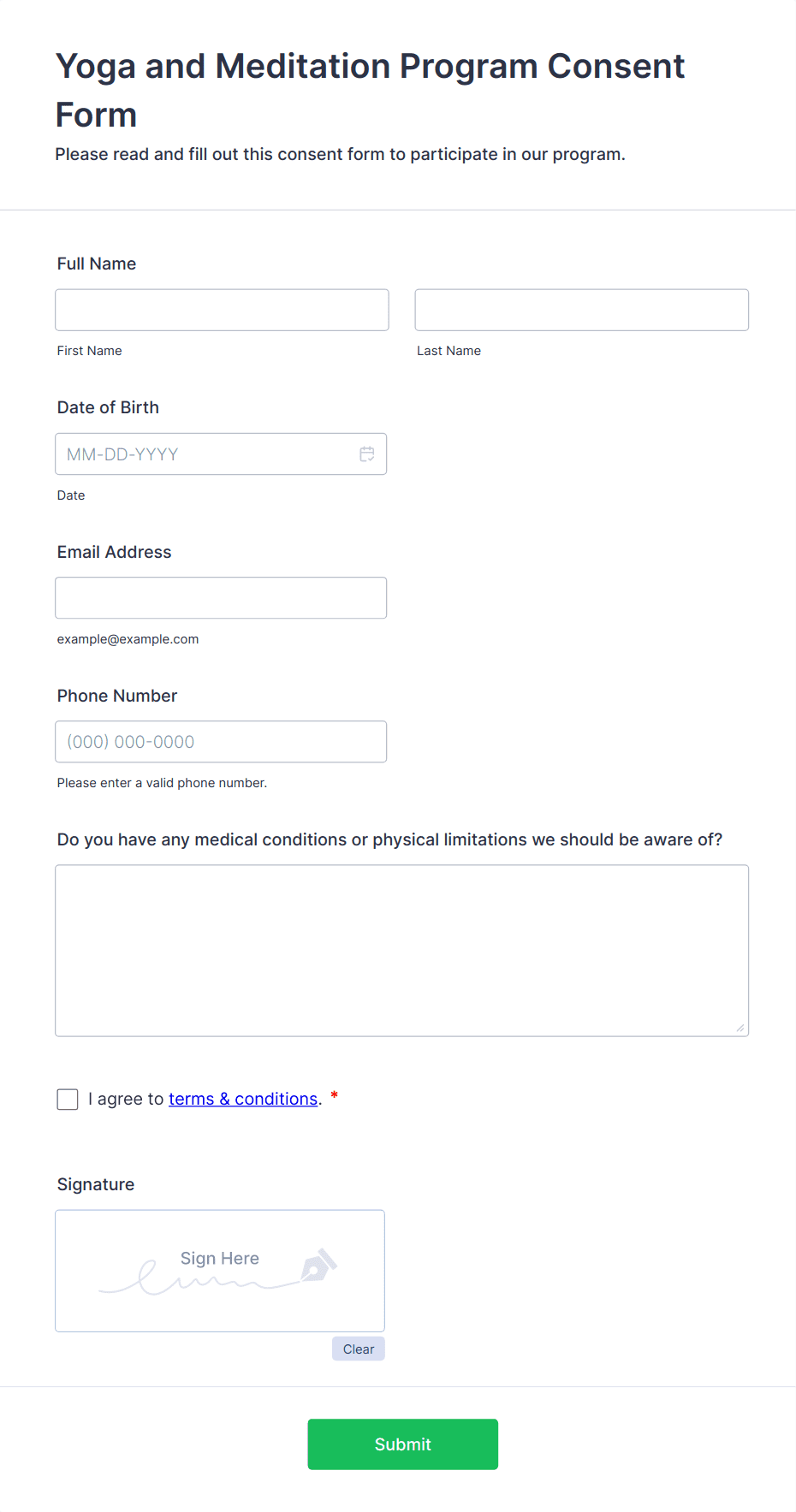 With Jotform, creating and managing consent forms becomes a seamless process. Jotform’s no-code Form Builder allows users to quickly design custom consent forms tailored to their specific needs, whether for patient intake, parental permissions, or data processing agreements. The drag-and-drop interface, customizable templates, and integration with secure storage and notification systems make it easy to collect, organize, and access consent responses. By leveraging Jotform’s advanced features, users can ensure compliance, streamline workflows, and provide a professional experience for both organizations and respondents.