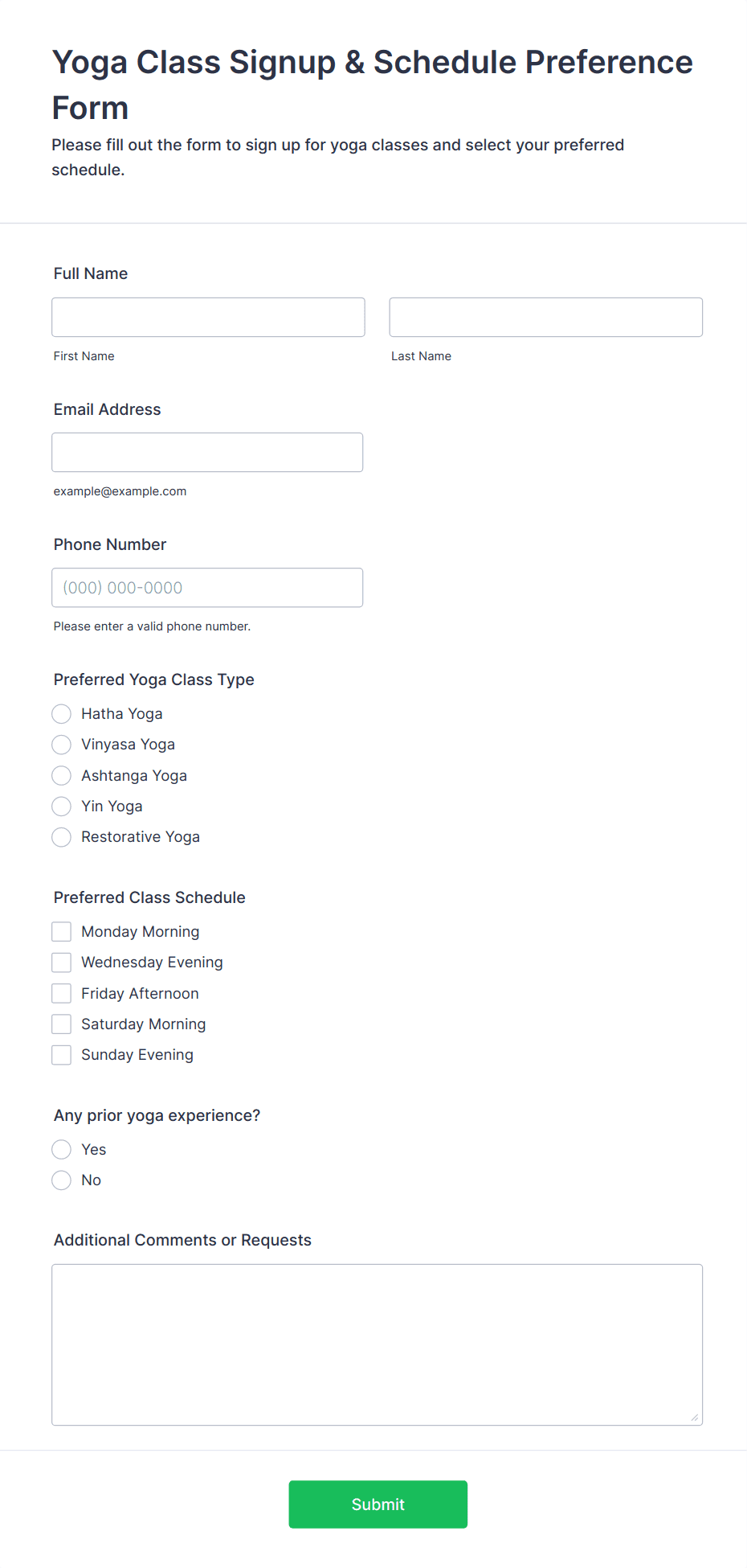 • Workshops and training sessions: Register participants, gather skill levels, and manage waitlists.
